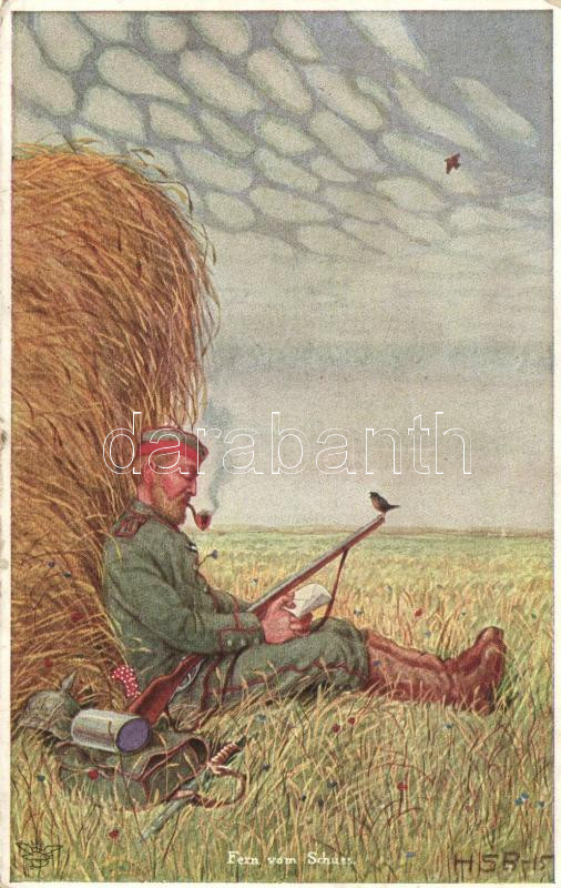 'Fern vom Schuss' Wohlgemuth & Lissner Einen Gruss aus der Heimat No. 1055 / German military humour s: HSB Herbert Schulz