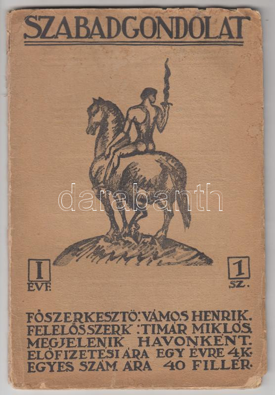 1911 Szabadgondolat. Szerkesztette Vámos Henrik. 1911 Május, I. évfoly... https://www.darabanth.com/en/26-Major-auction/26.1/Books/Avantgarde-literature~10288/1911-Szabadgondolat-Szerkesztette-Vamos-Henrik-1911-Majus-I-evfolyam-1-szam-56-p-Kiadoi-~II1404224
