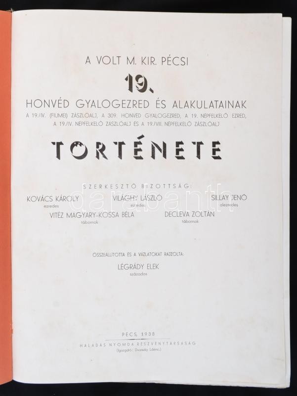 Légrády Elek (szerk.): A volt M. Kir. pécsi 19. honvéd gyalogezred és ... https://www.darabanth.com/en/26-Major-auction/26.1/Books/Books-Military~10280/Legrady-Elek-szerk-A-volt-M-Kir-pecsi-19-honved-gyalogezred-es-alakulatainak-tortenete~II1476558