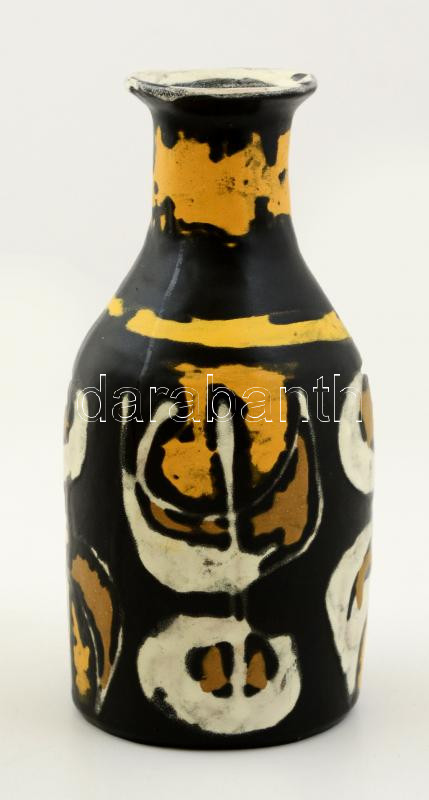 Gorka Lívia (1925-2011): Fekete-sárga csíkos váza, festett, mázas kerá...
