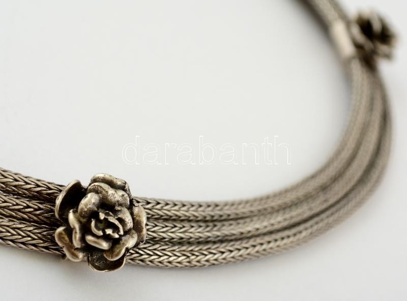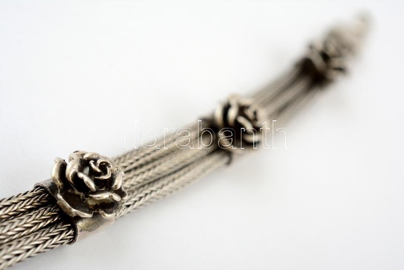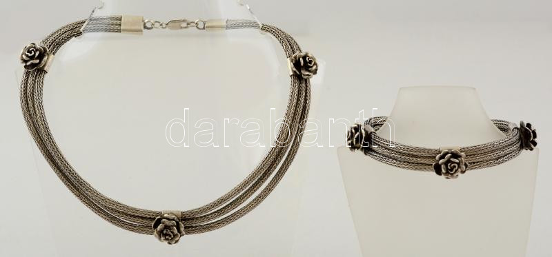 Ezüst (Ag.) nyaklánc és karkötő szett, plasztikus rózsákkal, jelzett, ...