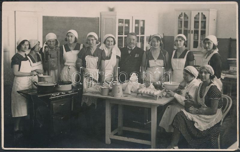 1931 Budapest, Prohászka Ottokár utcai főzőiskola, feliratozott fotóla...
