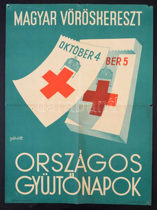 cca 1940 Gönczi-Gebhardt Tibor (1902 - 1994): Magyar Vöröskereszt orsz... https://www.darabanth.com/en/26-Major-auction/26.1/Other-collectibles/Poster~10276/cca-1940-Gonczi-Gebhardt-Tibor-1902--1994-Magyar-Voroskereszt-orszagos-gyujtonapok-Offset~II1484531