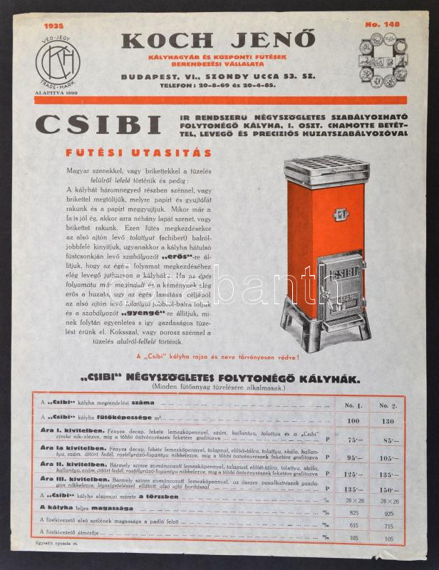 1929-1935 Koch Jenő Kályhagyár és Központi Fűtések Berendezési Vállala...
