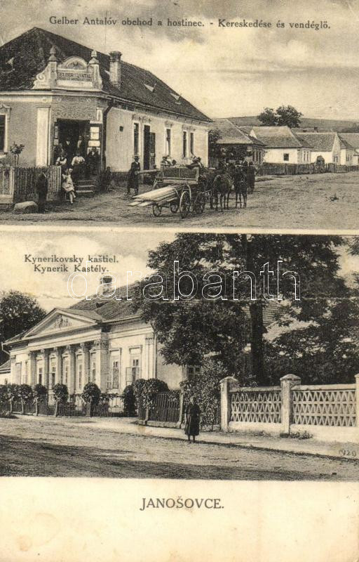 Jánosi, Rimajánosi, Janovce, Janosovce; Gelber Antal kereskedése és vendéglője, Kynerik (Szathmáry-Király) kastély / shop and restaurant, castle (EK)