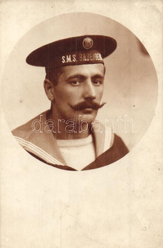 https://www.darabanth.com/en/26-Major-auction/26.1/Thematic-postcards/Warship~10213/1916-Az-SMS-Babenberg-osztrak-magyar-csatahajo-matroza-Laszloczky-Gyula-mariner-of-SMS-Baben~II1488511