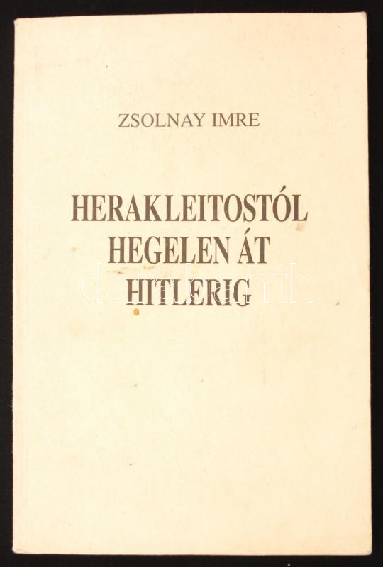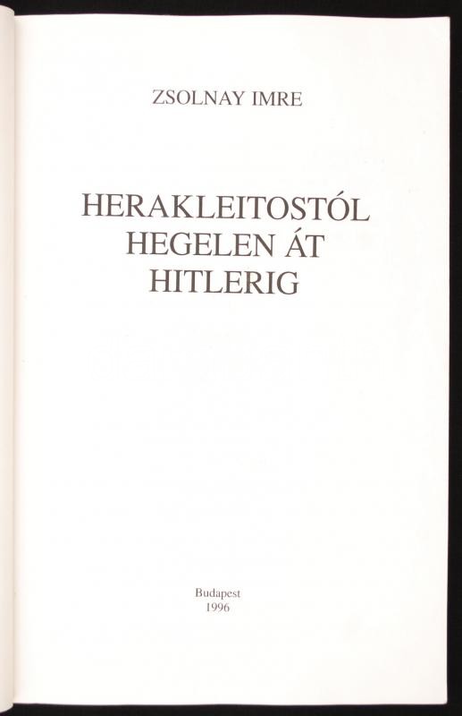 Zsolnay Imre: Herakleitostól Hegelen át Hitlerig. Bp., 1996, magánkiadás. 135 p. Kissé dohos kiadói papírkötésben. Dedikált példány!