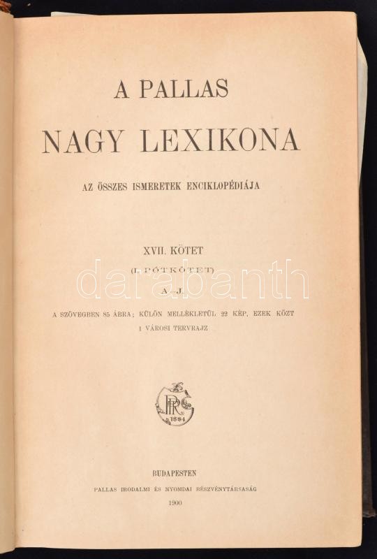 A Pallas Nagy Lexikona. XVII és XVIII. kötet, pótkötetek. Bp., 1900, P... https://www.darabanth.com/en/260-Online-auction/260.0/Books/Books-Other-rarities~40/A-Pallas-Nagy-Lexikona-XVII-es-XVIII-kotet-potkotetek-Bp-1900-Pallas-Eltero-kotesva~II1265577