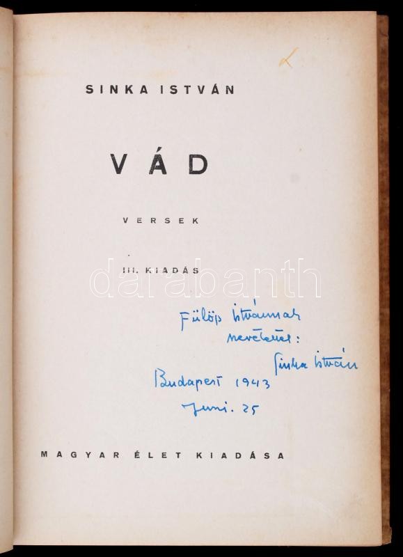 https://www.darabanth.com/en/260-Online-auction/260.0/Books/Books-Other-rarities~40/Sinka-Istvan-Vad-Versek-Bp-1942-Magyar-Elet-Kiadasa-Kiadoi-felvaszonkotesben-jo-a~II1281261