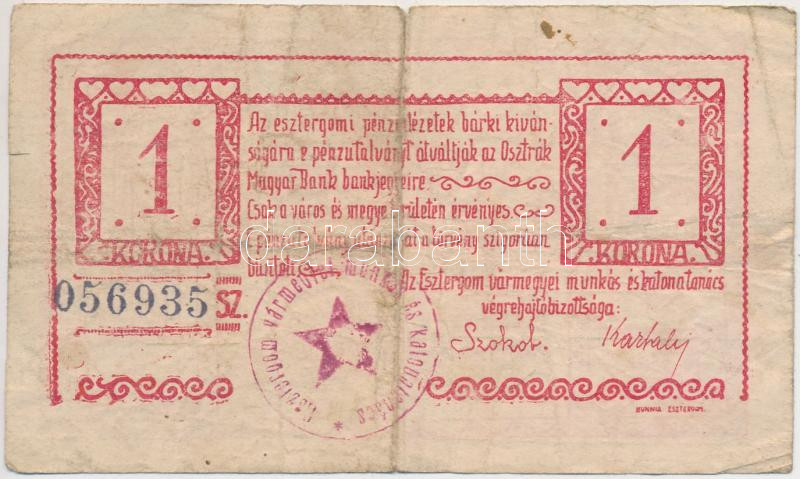 https://www.darabanth.com/en/260-Online-auction/260.0/Numismatics/Emergency-notes-and-coins-tokens~300005/Esztergom-1919-1K-Esztergomi-Penzintezetek-Utalvanya-felulbelyegzett-TIII-~II1267839