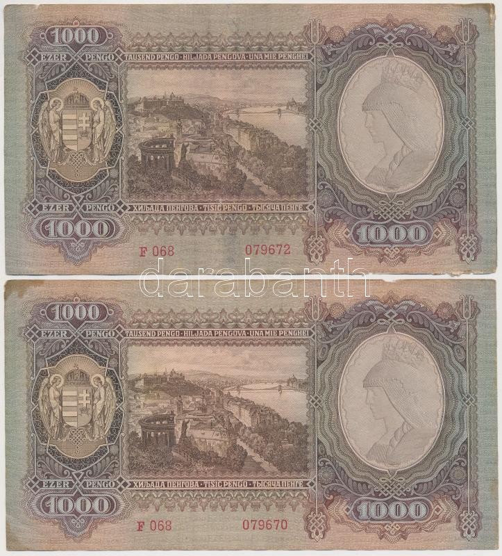 1943. 1000P (2x) egy ugrással sorszámkövetők T:II,II- folt, kis szakadás