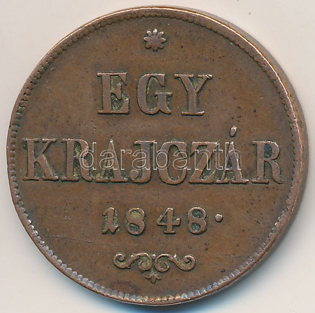 https://www.darabanth.com/en/260-Online-auction/260.0/Numismatics/Hungarian-coins-and-coins-with-Hungarian-mint-marks~300007/1848-1kr-Cu-T2~II1280282