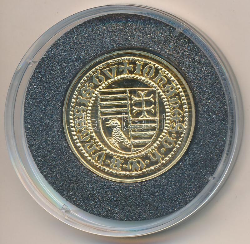 DN "Magyar aranypénzek utánveretben - Hunyadi János kormányzói aranyforint" aranyozott Ag emlékérem (5.5g/0.999/25mm) T:PP Tanúsítvánnyal