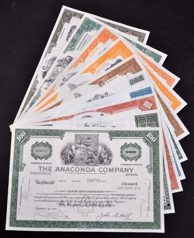 Amerikai Egyesült Államok 1968-1989. 10db klf részvény perforációval, ... https://www.darabanth.com/en/260-Online-auction/260.0/Numismatics/Shares-and-Tickets~300027/Amerikai-Egyesult-Allamok-1968-1989-10db-klf-reszveny-perforacioval-belyegzesekkel-lyukas~II1267841