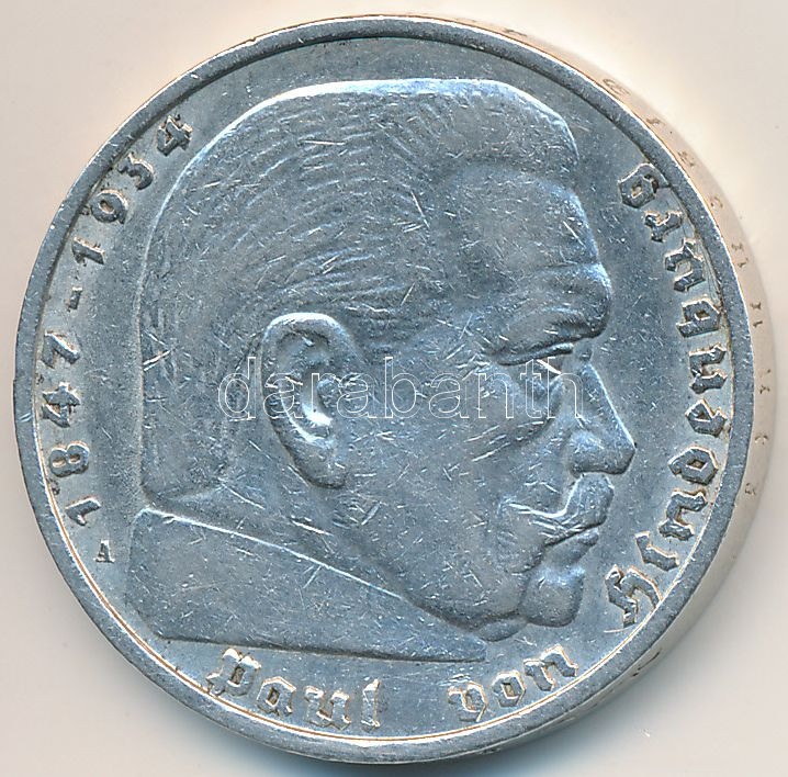 https://www.darabanth.com/en/260-Online-auction/260.0/Numismatics/Worldwide-silver-and-metal-coins~300020/Nemet-3-Birodalom-1936A-5M-Ag-Hindenburg-T2-German-Third-Reich-1936A-5-Mark-Ag-Hindenburg-C~II1280582