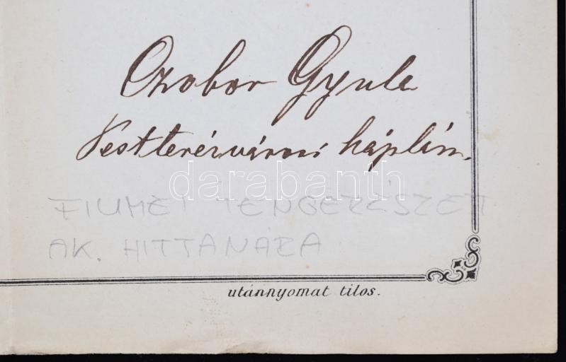 https://www.darabanth.com/en/260-Online-auction/260.0/Other-collectibles/Autographs~17/1870-Czobor-Gyula-Fiumei-Tengereszeti-Akademia-hittanaranak-alairasa-hazassagi-levelen-26~II1283755