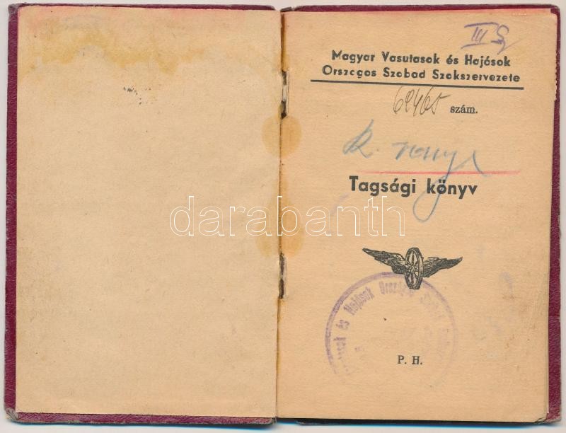 https://www.darabanth.com/en/260-Online-auction/260.0/Other-collectibles/Documents~15/1945-Magyar-Vasutasok-es-Hajosok-Orsz-Szabad-Szakszervezete-Tagsagi-konyv-belyegekkel-pp2~II1281372