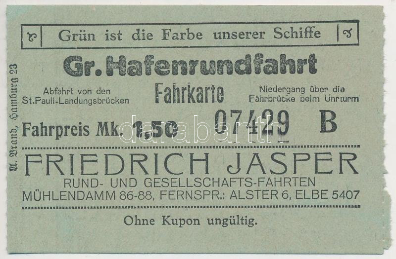 cca 1930 Gr. Hafenrundfahrt jegy, 6x9cm