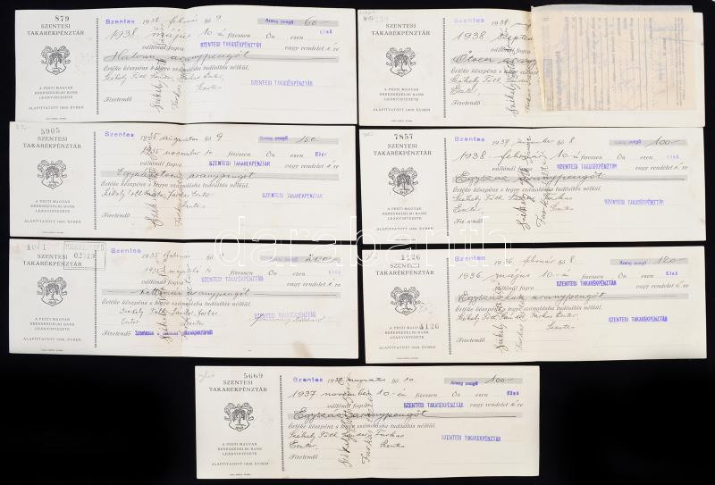 cca 1937 Szentesi takarékpénztár váltói, mind okmánybélyeggel. össz 7 ...