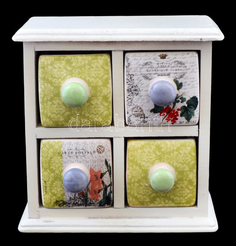 Fűszertartó, festett fa, matricás porcelán, 17×10 cm, m:17 cm