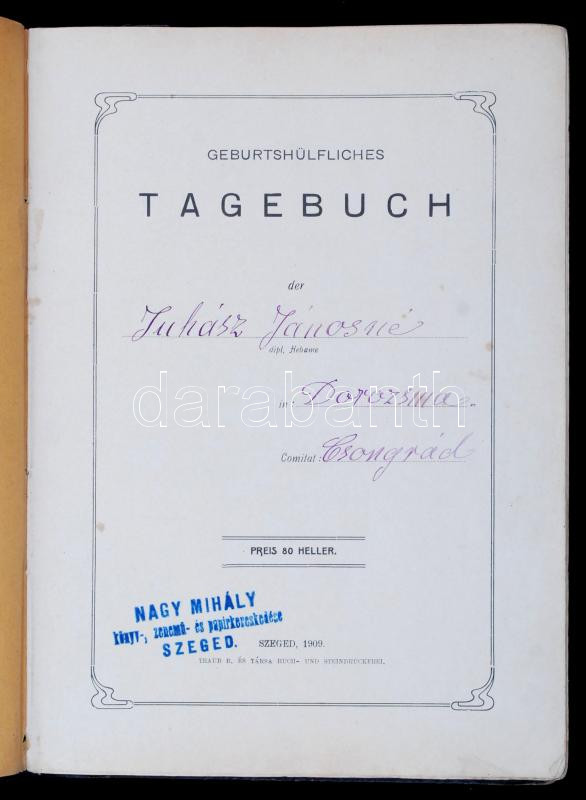 1923-1928 Kiskundorozsma, Geburtshülfliches Tagebuch (Szeged, 1909), n... https://www.darabanth.com/en/260-Online-auction/260.0/Other-collectibles/Historical-documents-manuscripts~16/1923-1928-Kiskundorozsma-Geburtshulfliches-Tagebuch-Szeged-1909-nemet-nyelvu-szuletesi-nap~II1286606
