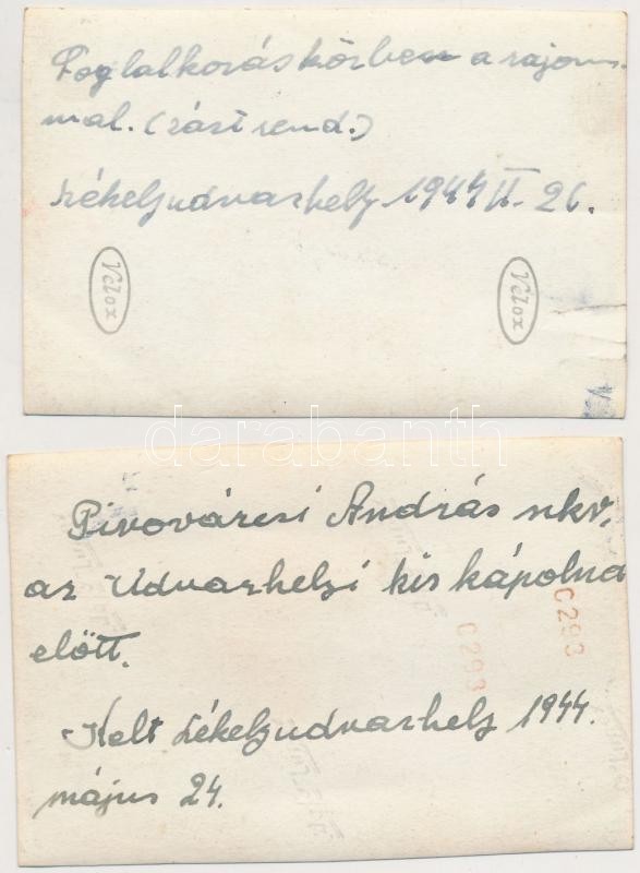 1944 Székelyudvarhely, 2 db katonai fotó, hátuljukon feliratozva, 6×8,5 cm