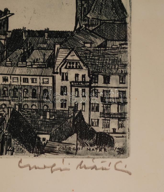 Csurgói Máté Lajos (1931-2001): Víziváros. Rézkarc, papír, jelzett, üv...