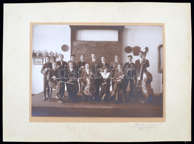 1925 Gyöngyös, Iskolai zenekar, Kovács fényképész felvétele, 15x22 cm, karton 23,5x32 cm