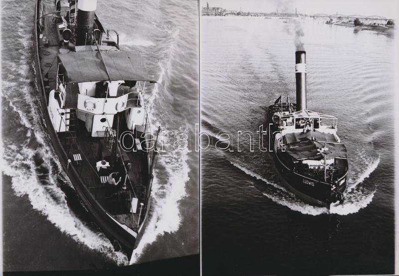 cca 1940 Hajók a Dunán, 5 db korabeli negatívról készült modern nagyít...