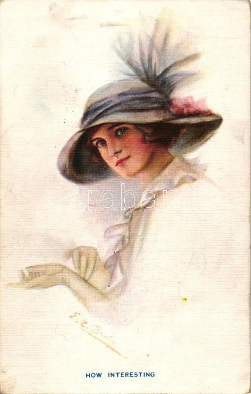 'How Interesting' / Lady playing with her gloves, The Carlton Publishing Co. Series No. 674/5., s: E.C. Brisley
