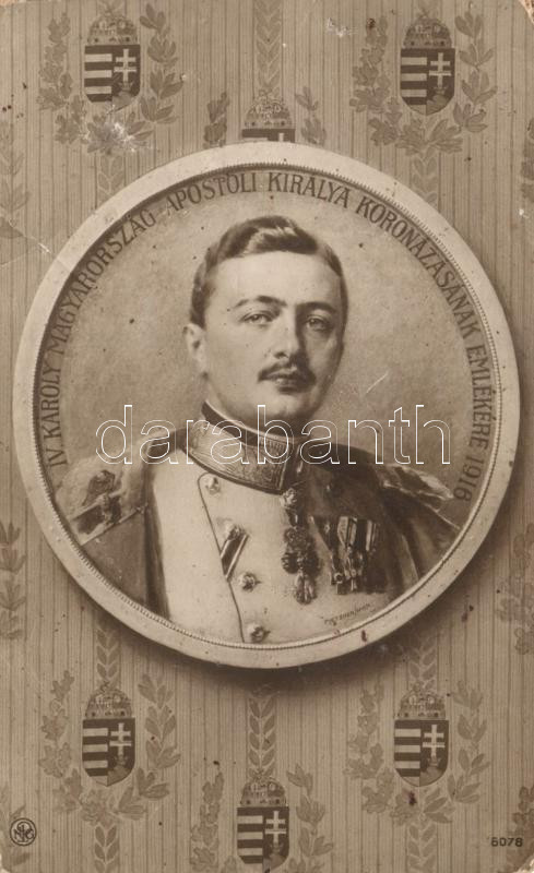 1916 IV. Károly Magyarország Apostoli királya koronázásának emlékére, címer / Charles IV, coronatioan memorial card, coat of arms (fa)