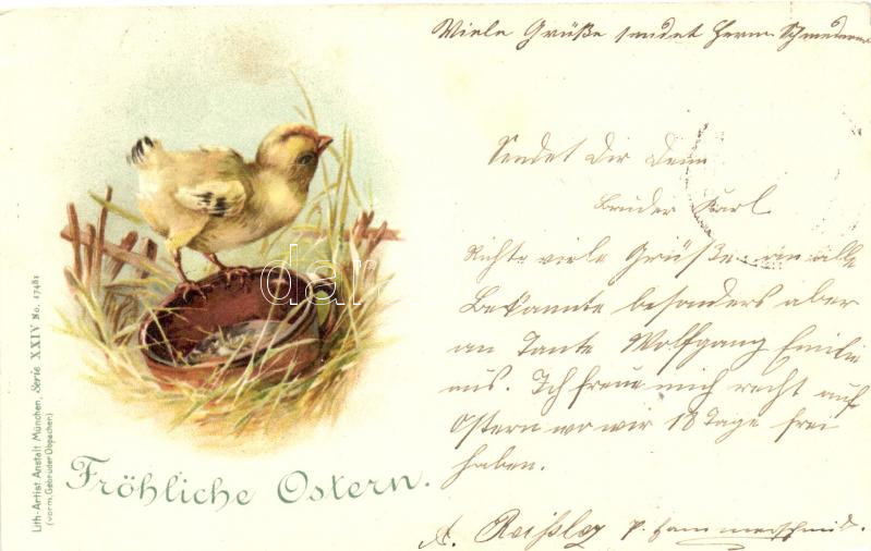 1899 Easter, chicken. Gebrüder Obpacher Serie XXIV. No. 17481. litho