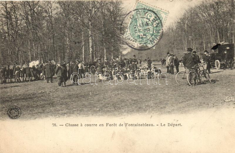 'Chasses a courre en Foret de Fontainebleau - Le Départ' / Fontainebleau, departure, automobile (small tear)