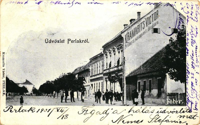 Perlak, Prelog; Fő tér, Kramarits Victor savanyúvíz főraktára, kiadja ...