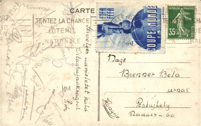 1938 'Coupe du Monde', a labdarúgó világbajnokság lapja, a h... https://www.darabanth.com/en/260-Online-auction/260.0/Postcards/Sport~100091/1938-Coupe-du-Monde-a-labdarugo-vilagbajnoksag-lapja-a-hatoldalon-a-magyar-jatekosok-ala~II1285328