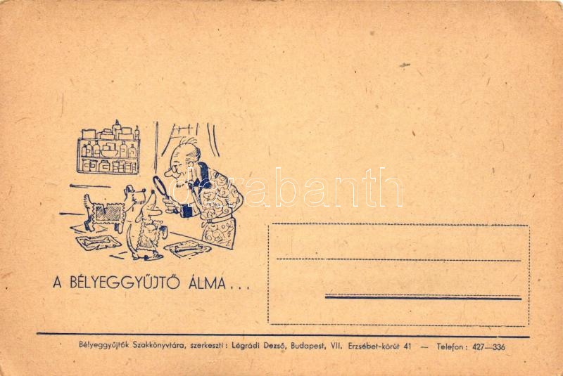 A bélyeggyűjtő álma; Bélyeggyűjtők Szakkönyvtára reklámlap / Hungarian stamp advertisement postcard (EK)