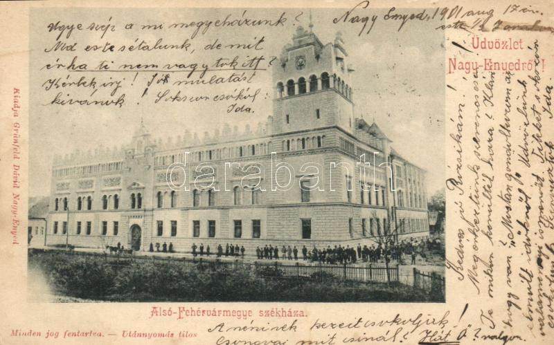 https://www.darabanth.com/en/260-Online-auction/260.0/Postcards/Transylvania~100020/Nagyenyed-Aiud-Alsofehervarmegye-szekhaza-kiadja-Grunwald-David-county-hall-EK~II1286983