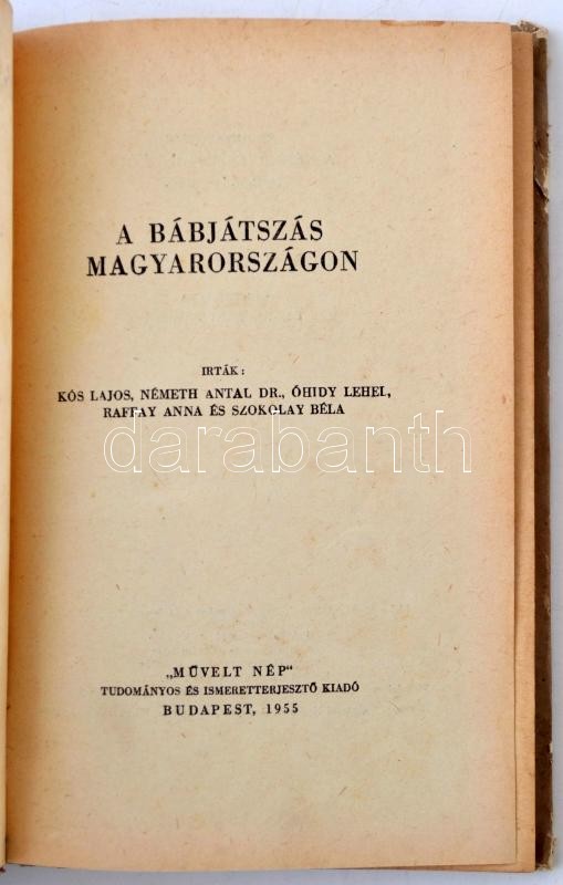 A bábjátszás Magyarországon. Szerk. Szilágyi Dénes. Bp., 1955, Művelt Nép. Kiadói kopottas félvászonkötésben. Kissé dohos példány.