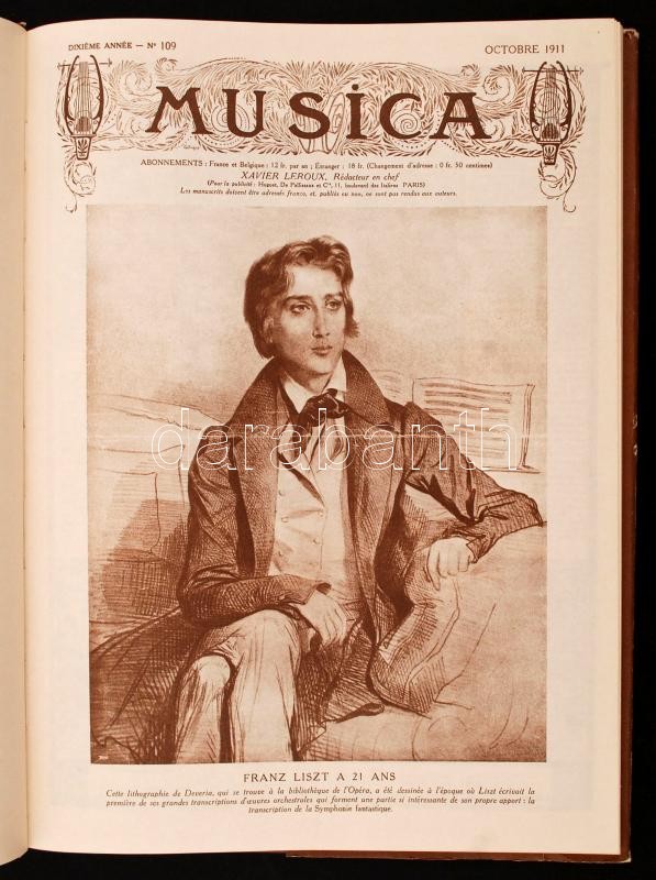 Liszt. A Musica című francia folyóirat 1911. októberi számának hasonmá... https://www.darabanth.com/en/261-Online-auction/261.0/Books/Books-Architecture-Art~400097/Liszt-A-Musica-cimu-francia-folyoirat-1911-oktoberi-szamanak-hasonmas-kiadasa-Liszt-Ferenc~II1273721