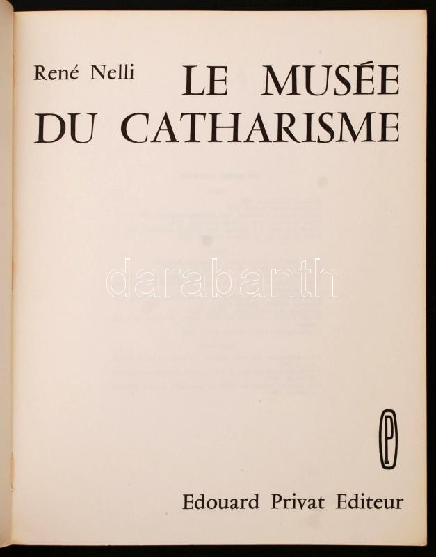 Nelli, René: Le Musée du Catharisme. 1966, Edouard Privat Editeur. Egy... https://www.darabanth.com/en/261-Online-auction/261.0/Books/Books-Architecture-Art~400097/Nelli-Rene-Le-Musee-du-Catharisme-1966-Edouard-Privat-Editeur-Egy-a-szerzo-altal-alairt-~II1273704