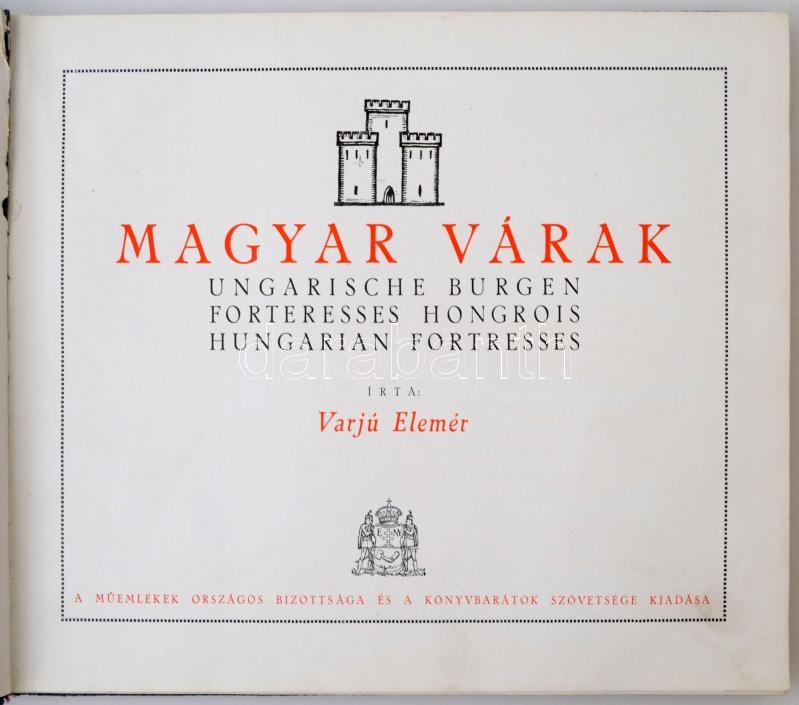 Varjú Elemér: Magyar várak. Ungarische Burgen. Hungarian Fortresses. B... https://www.darabanth.com/en/261-Online-auction/261.0/Books/Books-Architecture-Art~400097/Varju-Elemer-Magyar-varak-Ungarische-Burgen-Hungarian-Fortresses-Bp-en-Kiralyi-Magyar-~II1292128