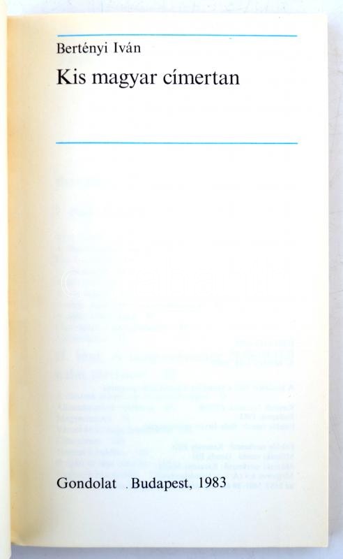 Bertényi Iván: Kis magyar címertan. Bp., 1983, Gondolat. Kiadói papírk...