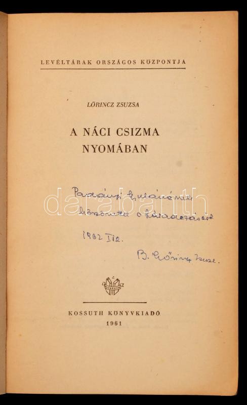 https://www.darabanth.com/en/261-Online-auction/261.0/Books/Books-History~33/Lorincz-Zsuzsa-A-naci-csizma-nyomaban-Kiadas-Bp-1961-Kossuth-Konyvkiado-Kiadoi-papirk~II1289027