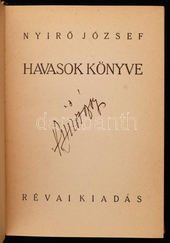 https://www.darabanth.com/en/261-Online-auction/261.0/Books/Books-Other-rarities~43/Nyiro-Jozsef-Havasok-konyve-Bp-1936-Revai-Kiadoi-kopottas-halinakotesben-A-szerzo-alC3~II1289578