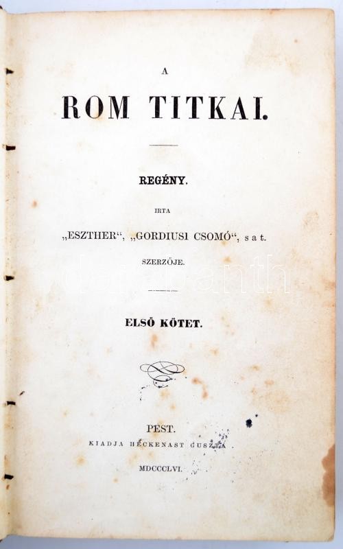 https://www.darabanth.com/en/261-Online-auction/261.0/Books/Books-Other-rarities~43/baro-Josika-Miklos-A-rom-titkai-I-II--Pest-1856-Heckenast-G-227plus190-p-Elso-kiadas-Kora~II1290910