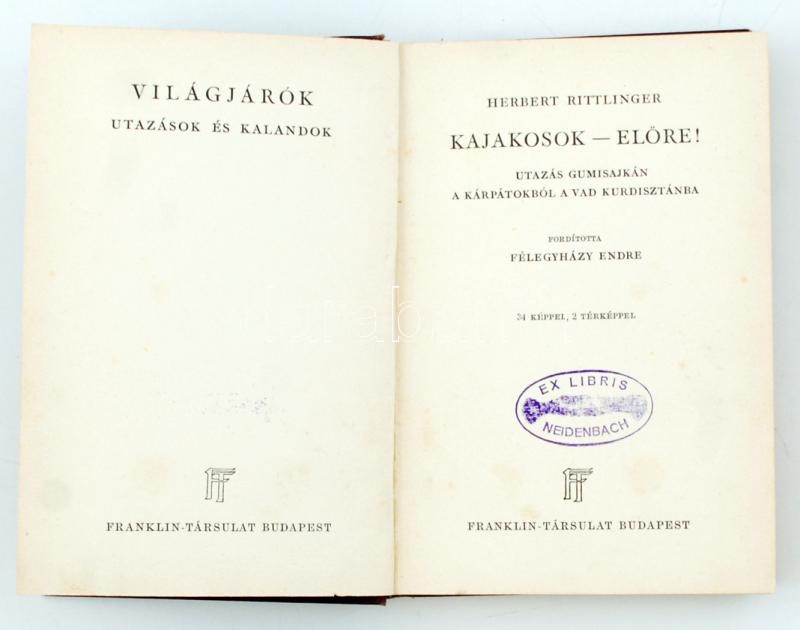 Rittlinger, Herbert: Kajakosok - előre! Utazás gumisajkán a Kárpátokbó... https://www.darabanth.com/en/261-Online-auction/261.0/Books/Books-Travelling-cities~30/Rittlinger-Herbert-Kajakosok--elore-Utazas-gumisajkan-a-Karpatokbol-a-vad-Kurdisztanba-B~II1263498