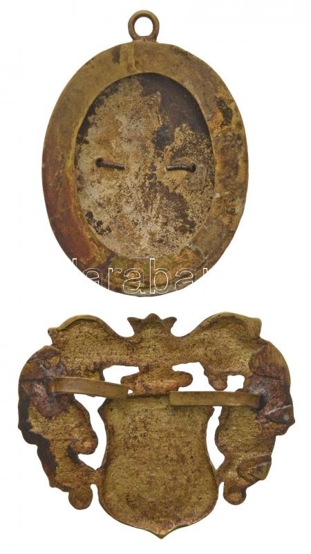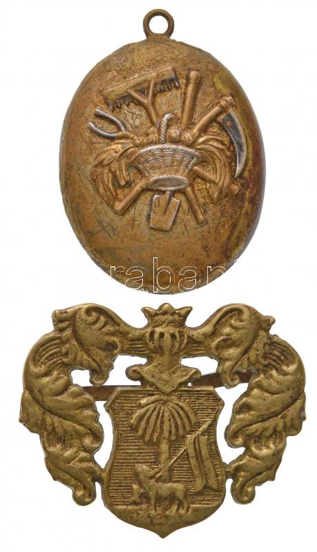 2db klf aranyozott fém medál és jelvény, egyik mezőgazdasági, másik egyházi témájú T:2-