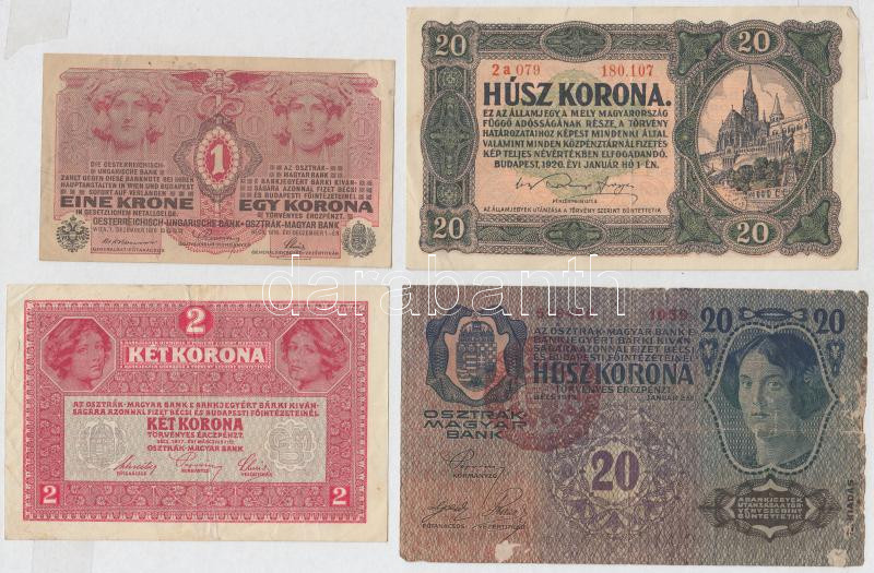 https://www.darabanth.com/en/261-Online-auction/261.0/Numismatics/Hungarian-Banknotes~300007/1913-20K-piros-MAGYARORSZAG-korbelyegzovel-plus-1916-1K-plus-1917-2K-plus-1920-20K-TIII-III-~II1290857