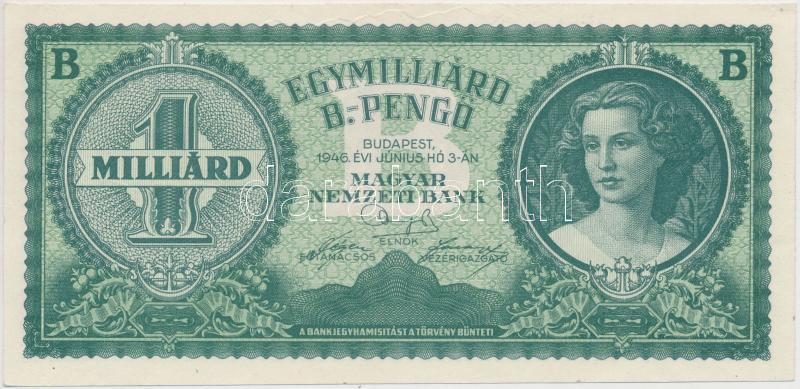 Hungary 1946. 1.000.000.000 B.-Pengő with typographical crease C:AU unfolded