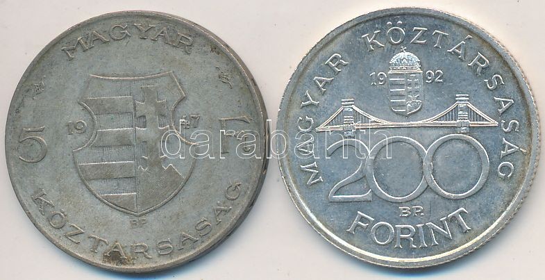 https://www.darabanth.com/en/261-Online-auction/261.0/Numismatics/Hungarian-coins-and-coins-with-Hungarian-mint-marks~300008/1992-200Ft-Ag-MNB-plus-1947-5Ft-Ag-Kossuth-T2-3~II1295348